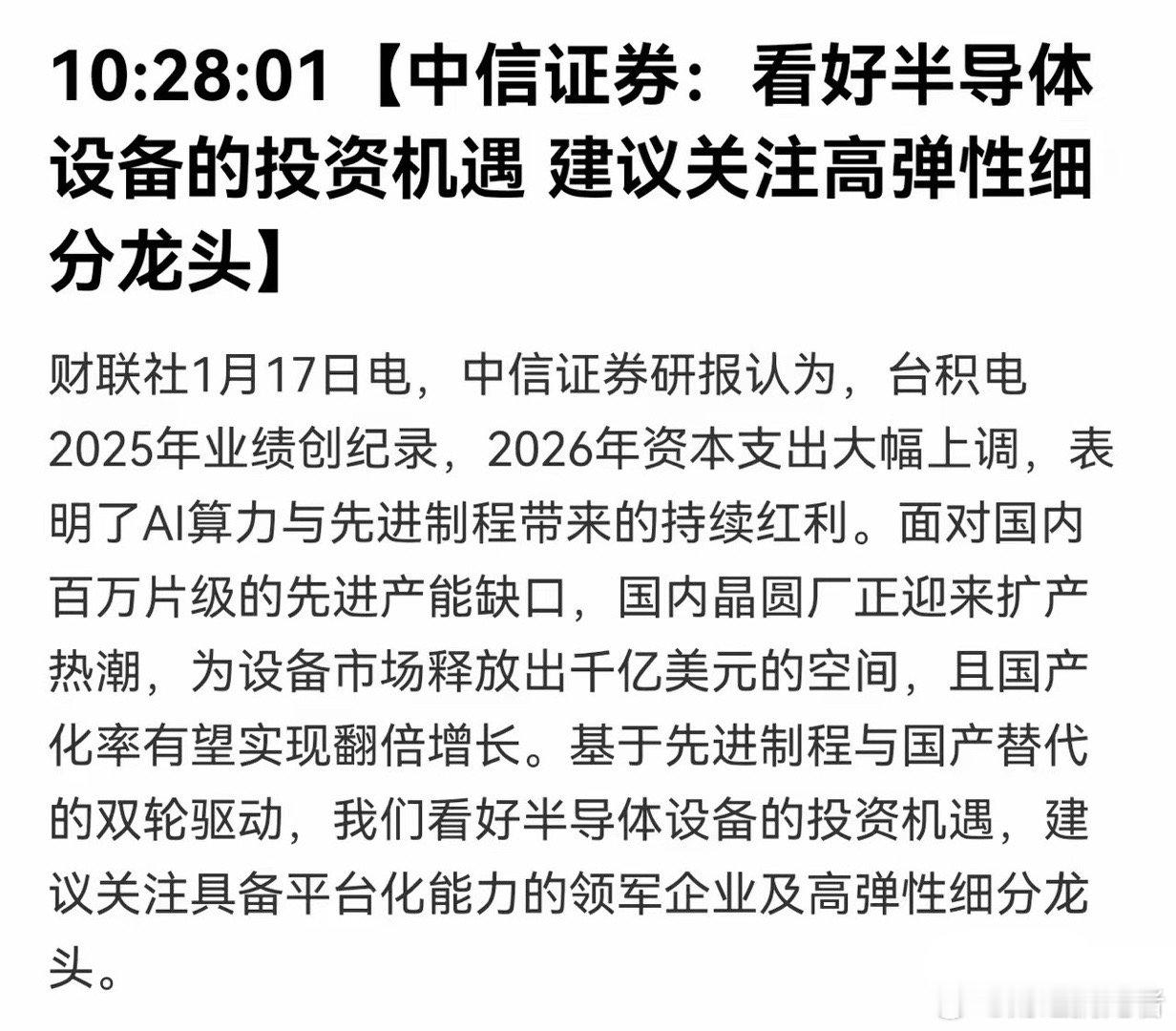 2026年1月19日看好的行业在不要疯牛,要长牛的背景下,疯牛按下了暂停键,AI应用和商业航天需要在调整些日,下面可能存在机会。1。存储芯片上周周四周五内存龙头已经领涨,一方面是缺内存涨价的需求,一方面是AI带来的更多的内存需求。2。半导体a。氮化镓芯片世界级突破国产半导体加速攻关。b。台积电2025年业绩创纪录,2026年资本支出大幅上调,AI带来扩产需求。3。电网国家电网于2026年1月15日宣布,在"十五五"(2026-2030年)期间,计划将固定资产投资总额提升至 4万亿元 ,相较于"十四五"期间增长40%,创下历史新高。4。其他机器人春晚将继续表演。碳纤维T1000取得突破并量产。对此你怎么看?