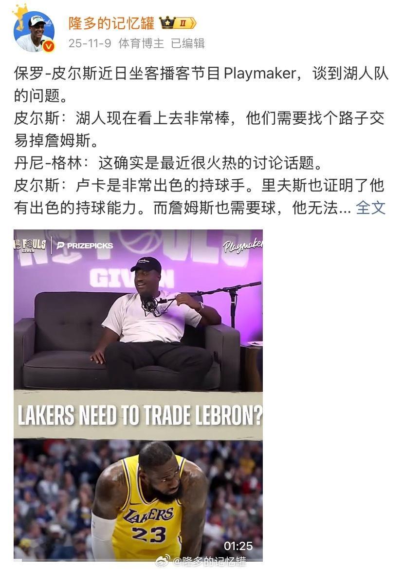 早在去年11月初,也就是詹姆斯复出前,皮尔斯便断言,他回来将会破坏球队化学反应,
