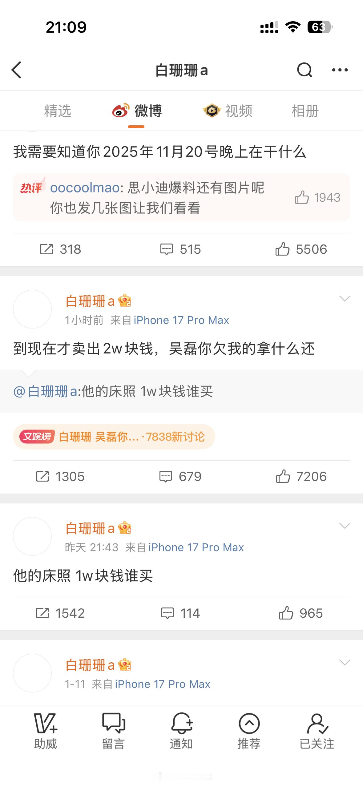 吴磊工作室发布严正声明,说已经取证此前,一位叫白珊珊的网友喊话吴磊,说「你欠我的