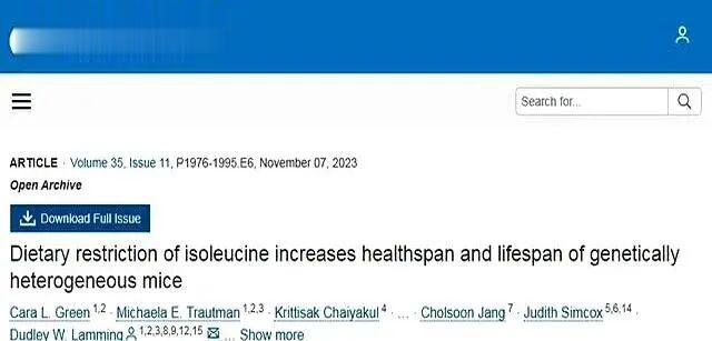 晚饭后在小区长椅上刷到这项研究,说是精准限制饮食里的异亮氨酸,从相当于人类中年开始,不光更瘦更稳,代谢还像开了增效模式。