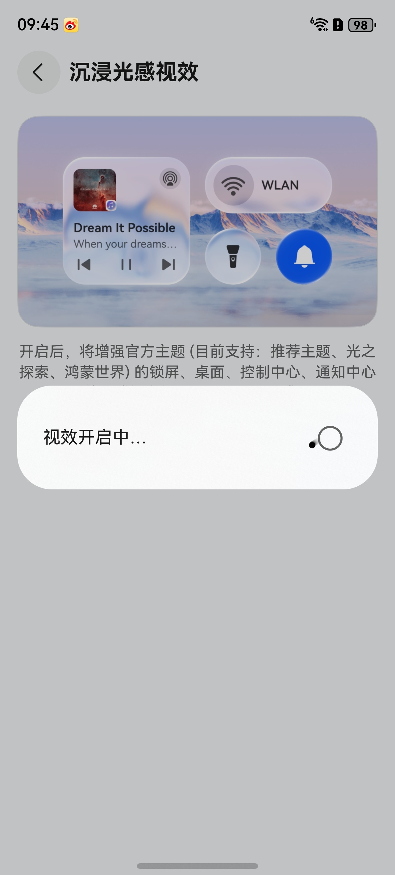 鸿蒙6新特性,沉浸光感视效,效果可以,建议都打开试试,比iOS26那个半成品玻璃