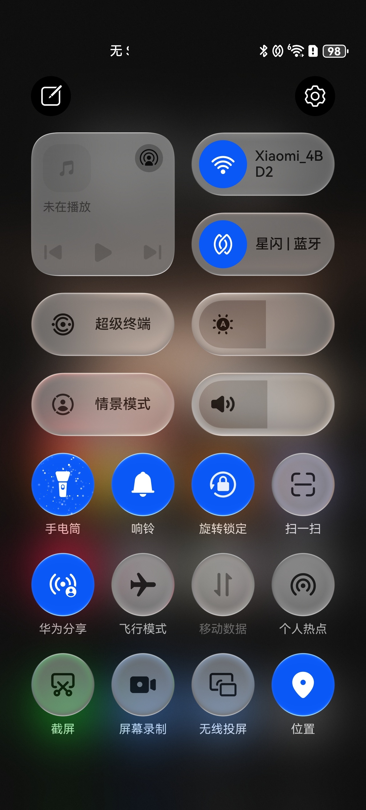 鸿蒙6新特性,沉浸光感视效,效果可以,建议都打开试试,比iOS26那个半成品玻璃效果梦幻多了