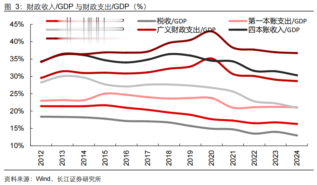 一是缓和财政压力。当前我国宏观税负持续下降,税收/GDP已从2012年的18%降至2024年的13%,同期广义财政收入/GDP也从30%降至21%。2025年12月中央经济工作会议强调“规范税收优惠、财政补贴政策”,我们认为,其用意正是稳定宏观税负、缓和财政压力。