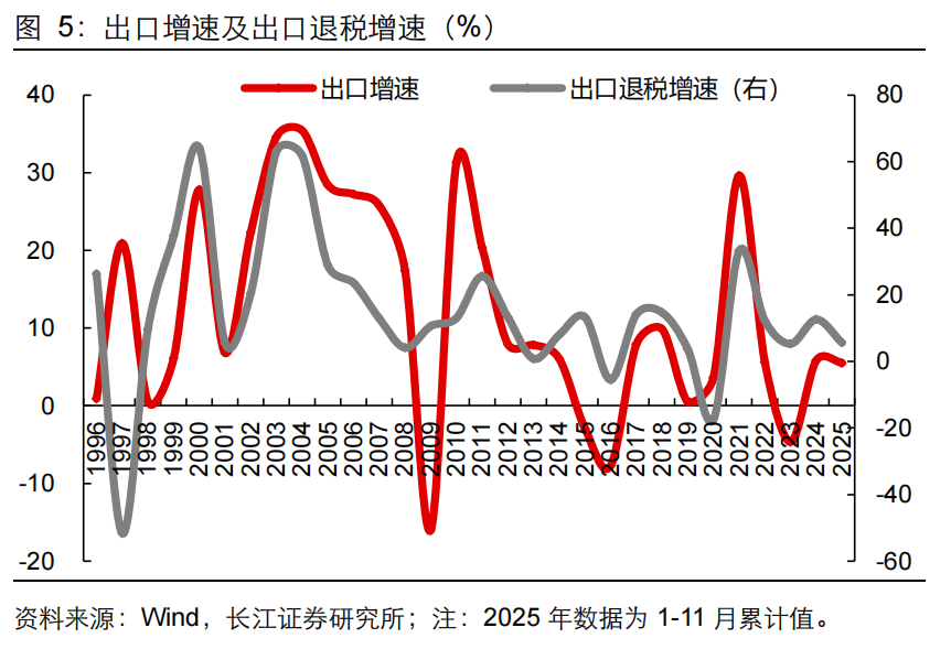 二是引导行业优胜劣汰。出口退税制度的初衷并非是出口补贴,而是避免出口产品被双重征税,从而促进公平贸易。但近年来,部分行业对出口退税政策的依赖度越来越高,越来越多的企业依赖出口退税补贴来维持生存,这也使得国内有效需求不足、供给过剩的矛盾不断凸显。因此政府引导“反内卷”在相关行业有序、逐步展开,取消部分行业出口退税与“反内卷”的政策思路一致,意在引导优化行业生态,推动高质量发展。
