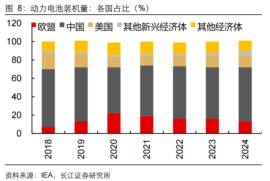 三是巩固我国供应链的全球优势。当前海外消费者已然成为出口退税的最大受益者,部分企业在出口过程中,不仅低价竞争,还将出口退税额折算为对外议价空间,导致原本用于对冲国内增值税负担的财政资金被让渡给海外消费者。短期来看,固然以财政收入和企业利润为代价赢得海外市场份额,但长期来看,在逆全球化、各国再工业化的背景下,也为海外竞争对手的成长提供了时间和空间。以新能源产业为例,2024年我国光伏新增装机容量占全球比重已达47.6%,动力电池装机量占比更是高达59%,因而取消出口退税,对于巩固我国供应链的全球优势而言,可谓利远大于弊。