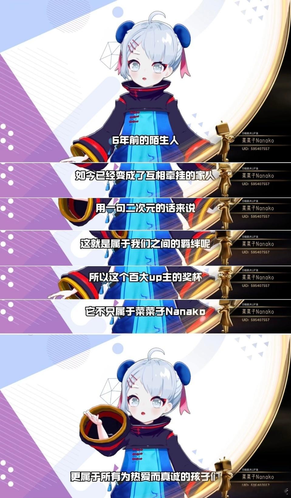 二次元蔡明首获百大UP主 恭喜我们的二次元顶流菜菜子!背后的蔡明老师坚守六年,以“千年萝莉”人设陪大家跨年,既敬业又懂包容,百大奖杯是对这份热爱的最好肯定!