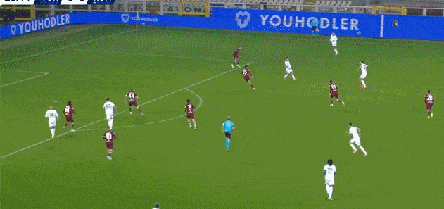 迪巴拉在上半场助攻马伦,帮助后者在罗马涯首秀中攻入进球: