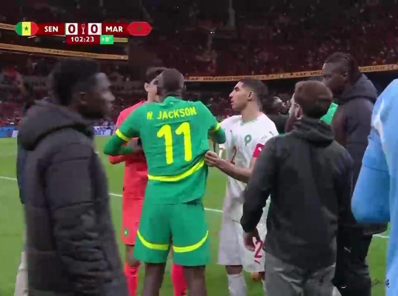非洲杯决赛险成闹剧!!!本届非洲杯决赛在塞内加尔与摩洛哥之间对决,一场重要的世界足球赛,差点变成闹剧收场。本场比赛常规时间波澜不惊,在下半场补时阶段,闹剧慢慢上演。补时阶段一分多钟,塞内加尔禁区内头球破门,塞内加尔看到非洲杯再次招手,正当球员们准备庆祝时,裁判判罚塞内加尔球员禁区内推人犯规,进球无效。塞内加尔的非洲杯冠军暂时没有了。补时阶段7分多钟,塞内加尔禁区内防守时放倒摩洛哥球员,裁判回看录像后直接判罚点球。塞内加尔不干了,塞内加尔对吹掉进球意见就产生了,这个时候被判点球,基本确定冠军没有了。先是塞内加尔球员和教练喷主裁判,然后双方主教练互喷,球员互喷。随后塞内加尔球员大部分回到更衣室,不踢了!!!整个闹剧时间大约持续了将近20分钟。塞内加尔球员才重新回到球场,比赛得以继续。最终塞内加尔凭借加时赛的进球,1:0小胜摩洛哥,捧起非洲杯。