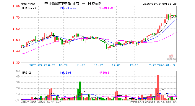 1月19日,中证500ETF中银证券(515190)开盘涨0.00%,报1.717元。中证500ETF中银证券(515190)重仓股方面,胜宏科技开盘跌3.97%,华工科技跌0.71%,芯原股份涨0.00%,先导智能跌0.66%,巨人网络涨3.33%,指南针跌0.42%,卧龙电驱涨1.37%,赤峰黄金涨1.86%,欣旺达涨0.08%,瑞芯微涨0.26%。