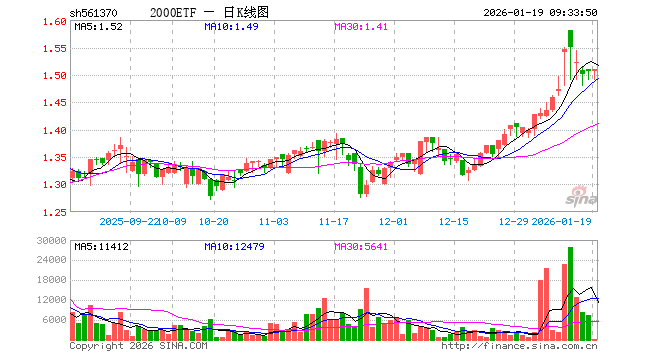 1月19日,2000ETF(561370)开盘跌0.07%,报1.506元。2000ETF(561370)重仓股方面,仕佳光子开盘跌1.72%,华胜天成跌10.00%,英唐智控跌1.35%,帝科股份涨5.81%,金字火腿涨0.49%,中际联合跌0.90%,振华股份跌0.19%,炬芯科技涨0.31%,东方电热涨0.55%,信息发展涨0.32%。