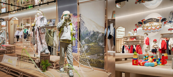 空间灵感取自唐朝的骆驼商队与满载奇珍的西域宝箱,利用可玩、可画、可探险的互动设计,打造出一个激发想象力、促进亲子互动的趣味式"探险乐园"。通过进一步划分出的大童区、小童区及鞋履区,令不同年龄段的孩子都能在这里针对性地挑选到符合需求的高品质鞋服。
