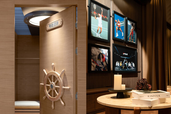 在这里,环球独航的宏大叙事与海上丝绸之路的历史及FILA百年探索的品牌精神融为一体。区域中心特别陈列了一艘复刻"FILATRI号"的帆船装置——1999年,FILA赞助意大利帆船家吉奥瓦尼•索尔迪尼(GiovanniSoldini)驾驶该帆船原型,独自航行大西洋116天,创下了新的世界纪录。"荣耀回廊"则集中展示了品牌在航海、滑雪、登山、网球、高尔夫等领域的"冠军时刻",以及陪伴冠军的传奇单品。从网球名将比约•博格(BjörnBorg)捧杯时的胜利夹克,到"果岭皇后"南茜•洛佩兹(NancyLopez)标志性的NANCYPOLO等——每一个历史瞬间,都代表着FILA通过技术、审美的持续创新,以破浪之姿引领运动与时尚的航程。
