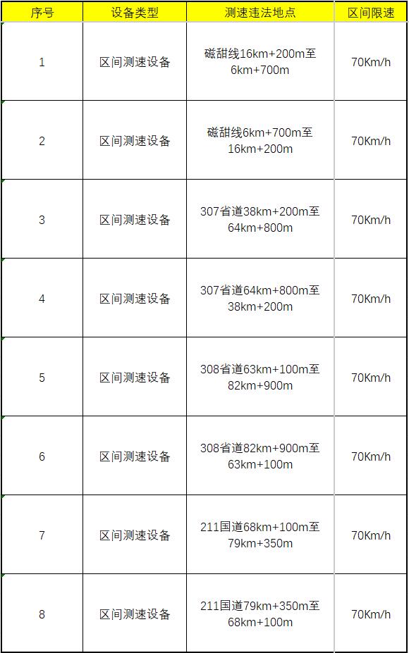 一、电子警察8处(超速、逆行、拨打电话、未系安全带等违法行为)