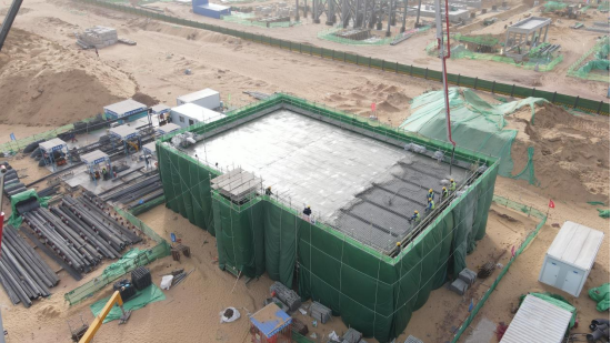 本次封顶的添加剂储存间为钢筋混凝土框架结构,浇筑混凝土总量102立方米。施工过程中,HDPE项目部锚定目标、协同攻坚,以精细化管控和高效率施工节奏,展现出专业水准与扎实作风,实现设计、施工全流程“短平快”推进,为后续地上工程全面推进奠定坚实基础,吹响提速攻坚新号角。