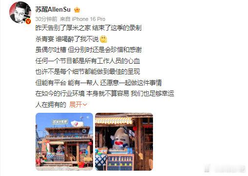 苏醒告别厚米之家苏醒告别快乐老友记谁懂啊!看到苏醒说感谢观众包容,瞬间就想起厚米之家的那些欢乐日常苏醒发文感谢老友记观众们的包容和支持