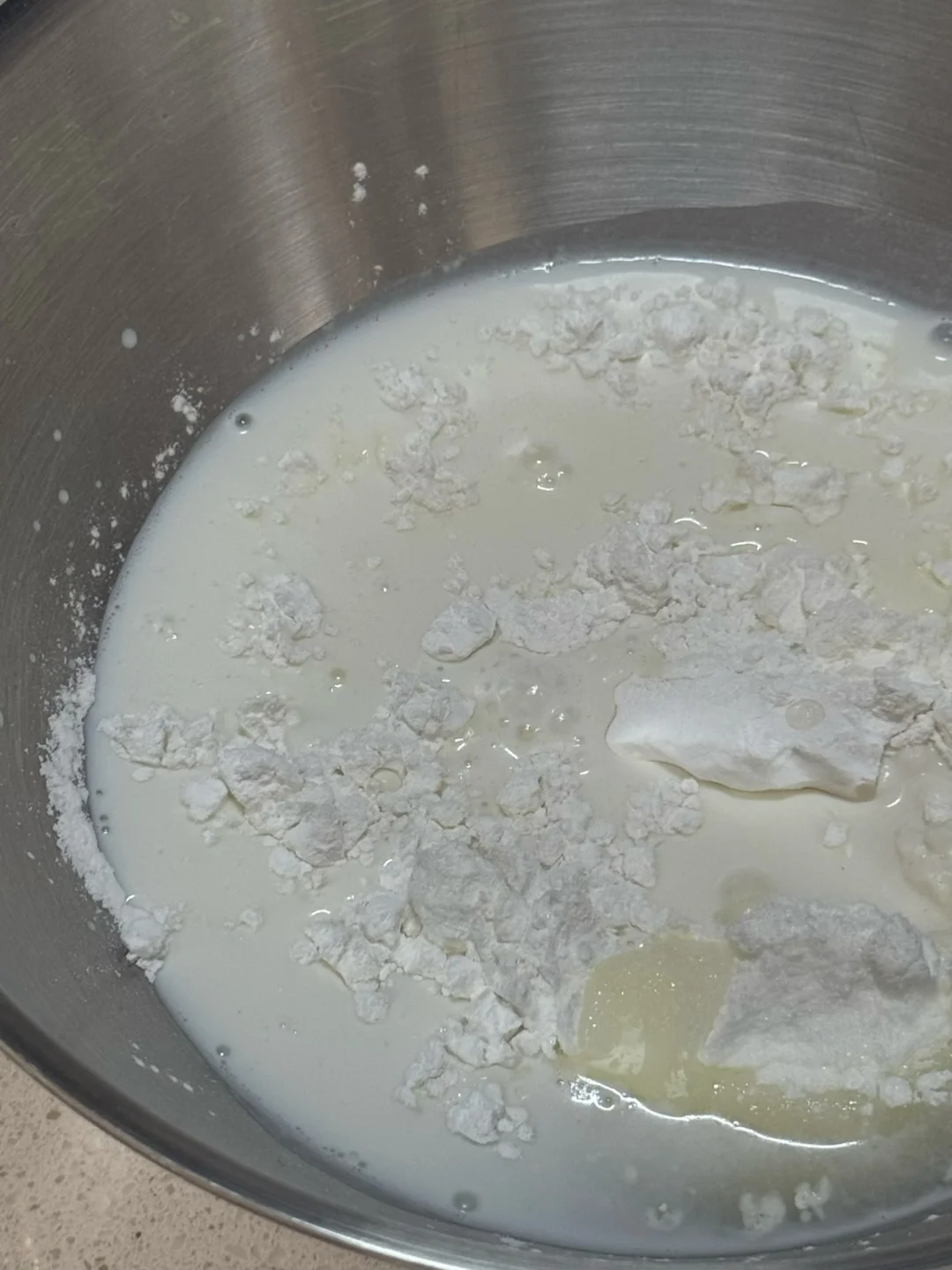 1.糯米粉、细砂糖、玉米淀粉、纯牛奶搅拌均匀。