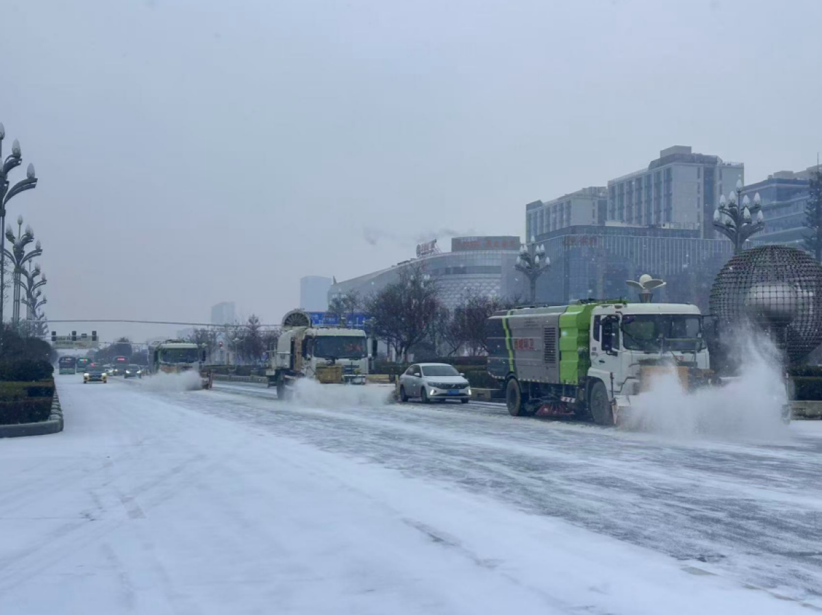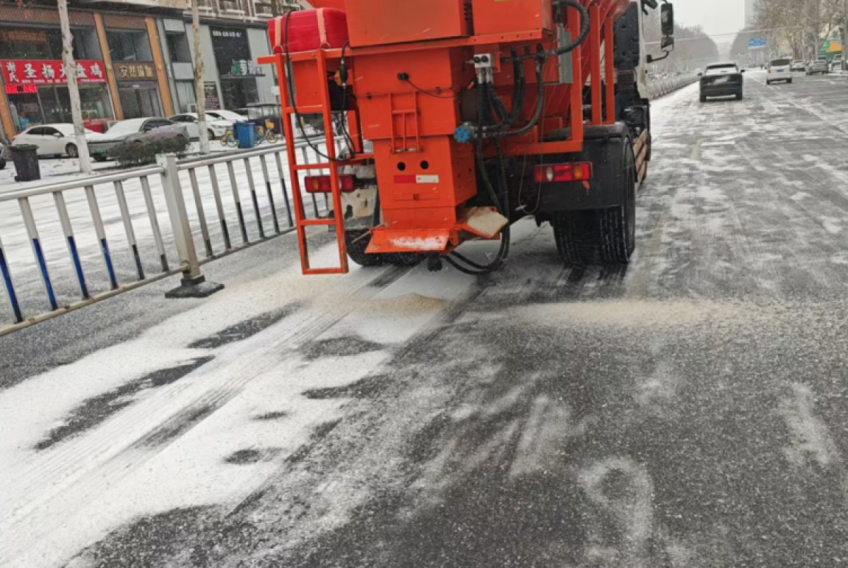 环卫部门全面打响“随下随清、雪停路净”攻坚战,现场,作业队伍全员在岗、101台铲冰除雪机械与16台融雪剂撒布机协同作战。清雪车辆不间断穿梭在市区主次干道高效推扫;针对桥梁、陡坡、十字路口等易结冰重点路段,撒布机科学、精准抛洒融雪剂,从源头遏制路面结冰,最大限度降低降雪对交通出行的影响。