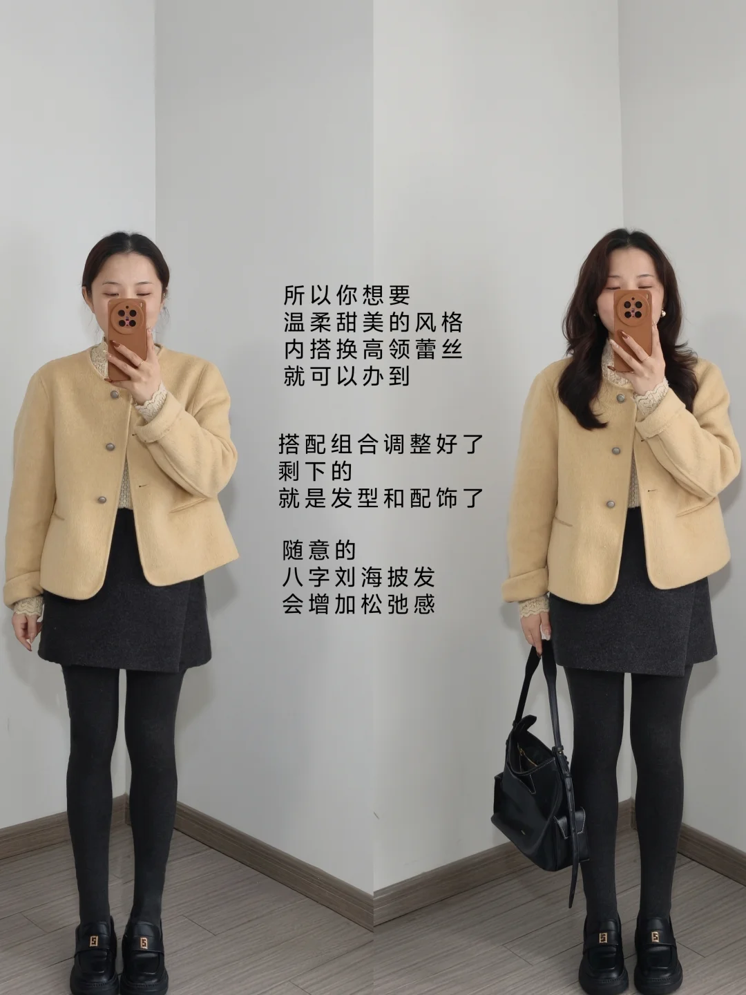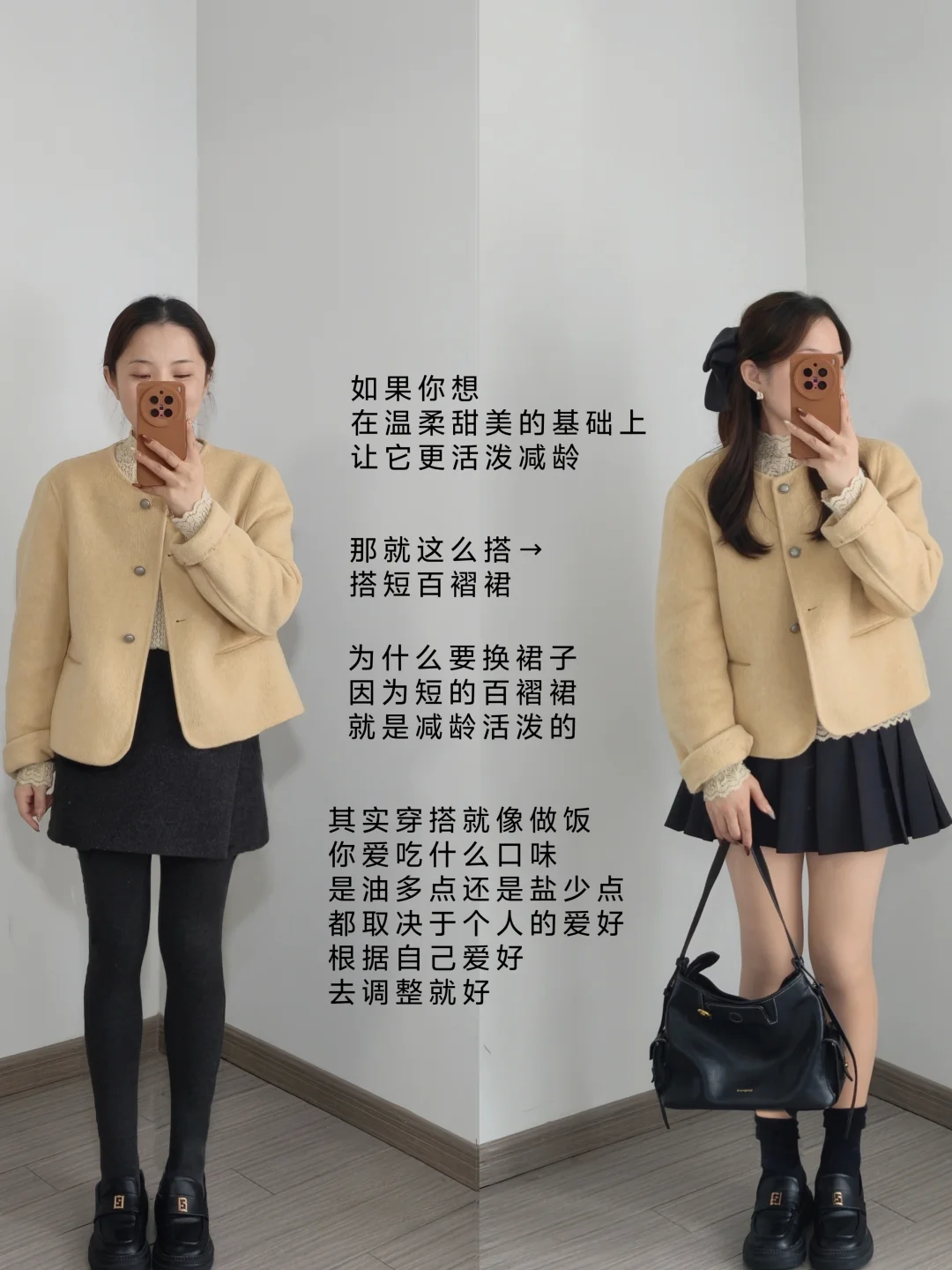 小香风短外套搭短裙子不应该是温柔甜美的吗