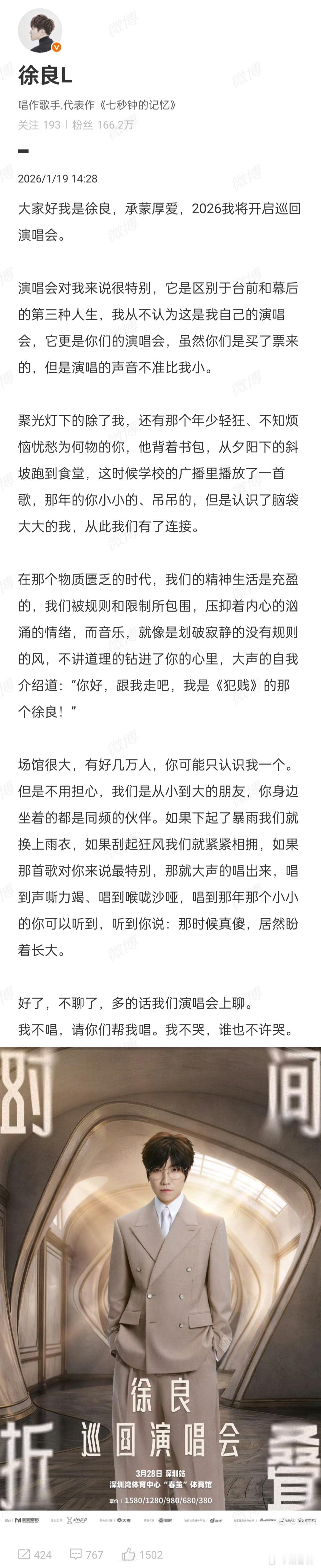 我的老天,徐良真的要开演唱会了,谁的DNA动了徐良官宣巡演