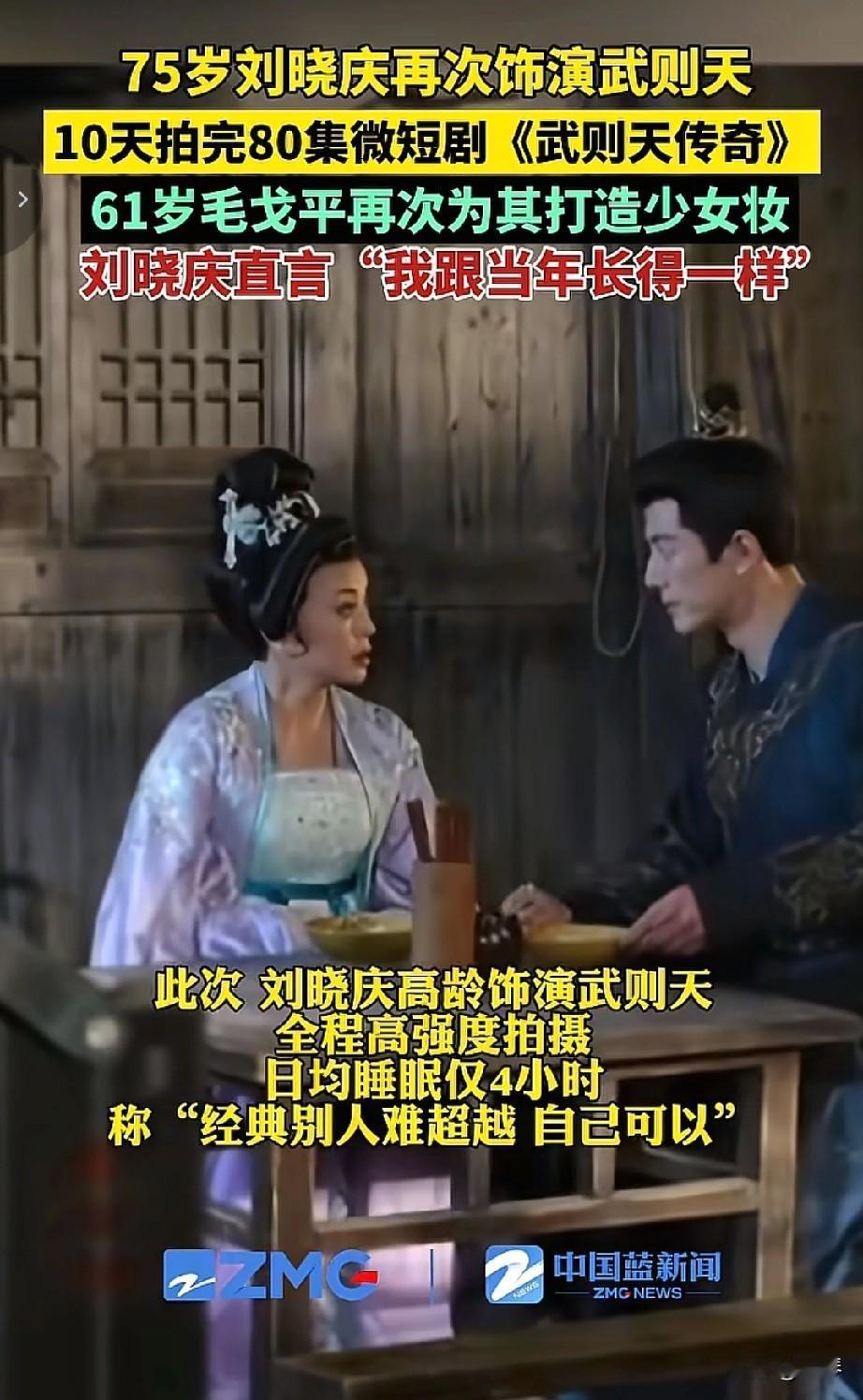 不得不说,屏幕是真能美颜,把刘晓庆拍得如此年轻,让人不得佩服导演和剧组的用心。 75岁刘晓庆再演武则天,10天拍完80集微短剧《武则天传奇》,61岁毛戈平操刀打造少女妆,直言“我跟当年长得一样”。 当镜头里那张带着红妆的脸抬起来时,很难让人相信这是一位年逾七旬的女演员。屏幕的美颜效果固然强大,但更让人佩服的是剧组的用心——从妆造到打光,每一处细节都在努力延续30年前的经典记忆。1995年版《武则天》创下34.7%的收视神话,如今刘晓庆顶着日均仅4小时睡眠的高强度拍摄,喊出“经典别人难超越,自己可以”的豪言,这份不服老的劲头,比少女妆更让人动容。 微短剧的快节奏里,藏着观众对“回忆杀”的买单,也藏着刘晓庆对角色的执念。或许屏幕的滤镜能模糊年龄,但她眼里的韧劲,却是岁月磨不掉的真实。 有人说这是“不服老的倔强”,也有人说这是“情怀的贩卖”,但不可否认的是,刘晓庆用一张屏幕里的“少女脸”,让我们看到了一个女演员与角色跨越30年的羁绊。屏幕的美颜终会褪色,但这份敢为角色拼到底的劲儿,才是真正的“冻龄秘籍”。 晒图笔记大赛刘晓庆 新剧 短剧