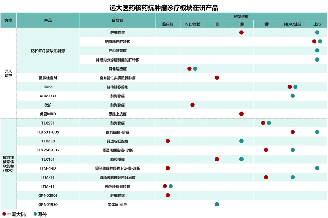 值得注意的是,公司自主研发的全球创新靶向成纤维细胞活化蛋白(FAP)的小分子RDC药物GPN01530早前已获得FDA批准开展用于诊断实体瘤的I/II期临床研究,成为远大医药首款获得FDA批准开展临床研究的自研RDC产品,该产品在临床前研究中已展现出“同类最优”(BIC)潜质,或将成为下一代癌症成像标准疗法。该产品海外临床的成功获批也为远大医药核药产品管线的国际化开发提供了重要范式,同时也展现出了公司核药技术平台优秀的临床前开发及国际注册能力。
