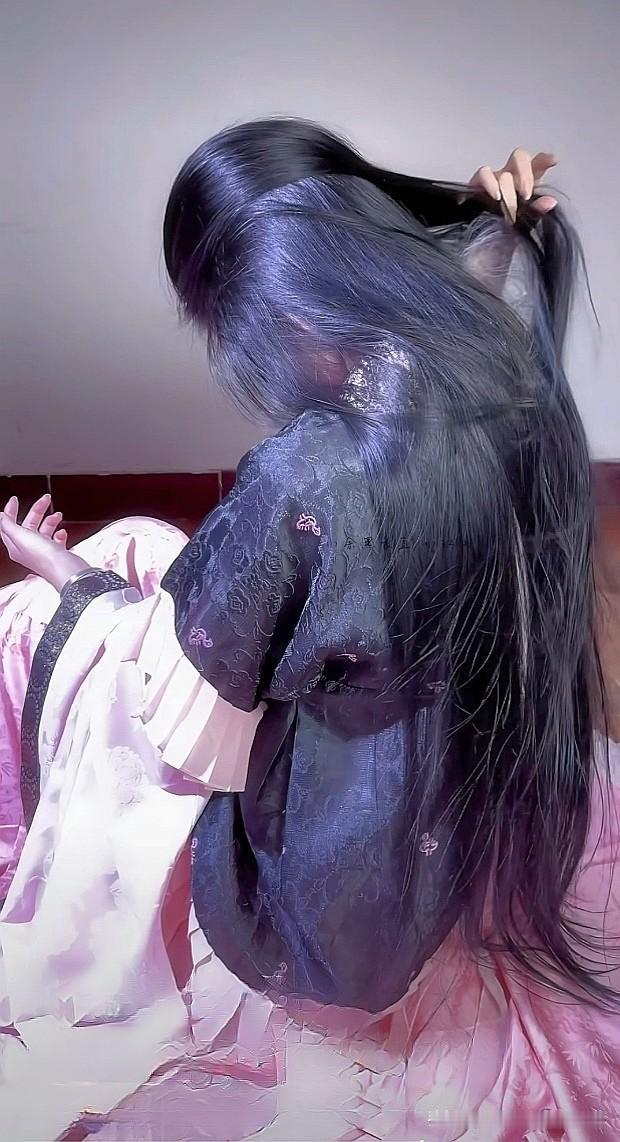 梦幻蓝发少女,温柔气质满满[害羞][害羞]