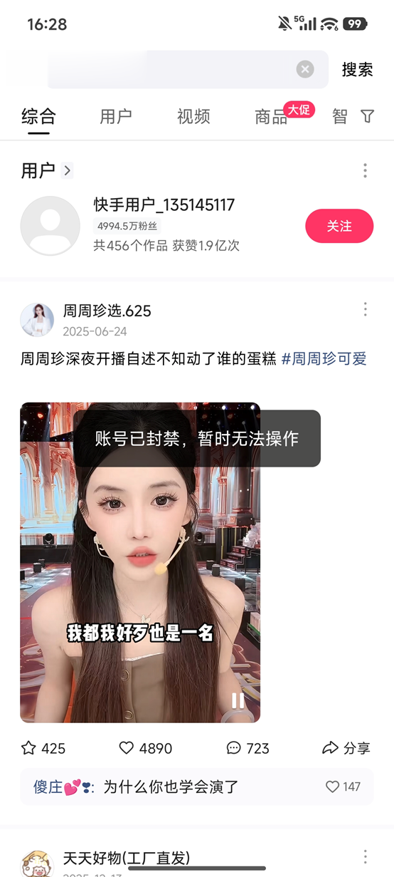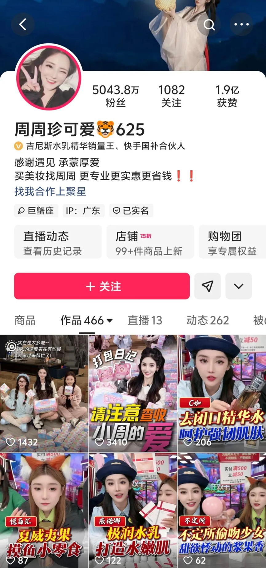 比方说在快手拥有5000万粉丝的网红“周周珍可爱625”(本名周珍,下称周珍),她是平台头部美妆博主,被称为美妆领域的“领军人物”,曾被“湖南省娄底市助农公益大使”。就是这么一个满身光环的大网红,前段时间被曝出了违法行径。