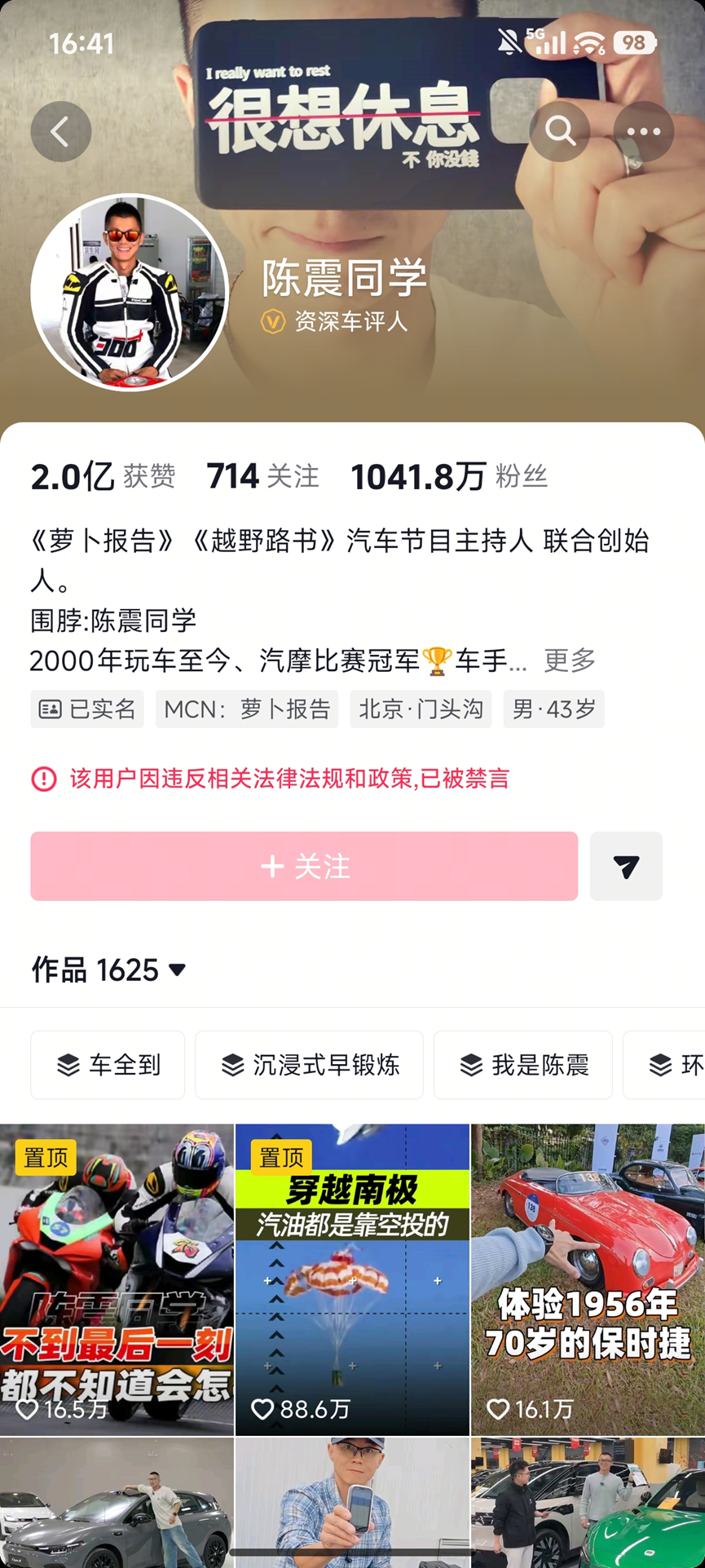 此外,在全网拥有超2400万粉丝知名车评人陈震,前段时间也深陷税务风波,因偷税漏税被税务部门查处,同样落得被封禁的下场。