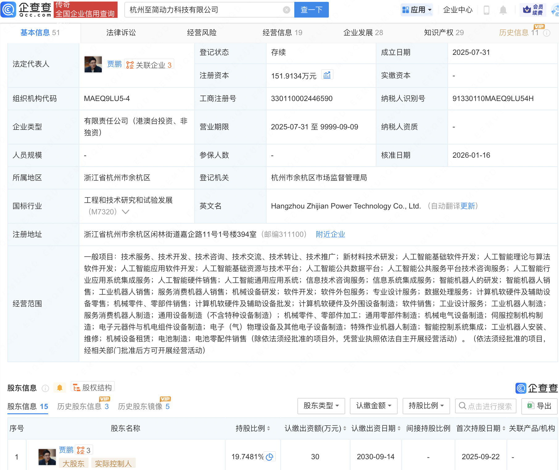 企查查APP显示,近日,杭州至简动力科技有限公司发生工商变更,新增广西腾讯创业投资有限公司、淘宝中国控股有限公司等为股东,同时注册资本增至151.91万元。企查查信息显示,该公司成立于2025年7月,经营范围包含:人工智能基础资源与技术平台;人工智能公共数据平台;人工智能公共服务平台技术咨询服务;智能机器人的研发等。公开信息显示,至简动力是一家智能驾驶技术研发商,是前理想汽车智能驾驶技术研发负责人贾鹏的创业项目。