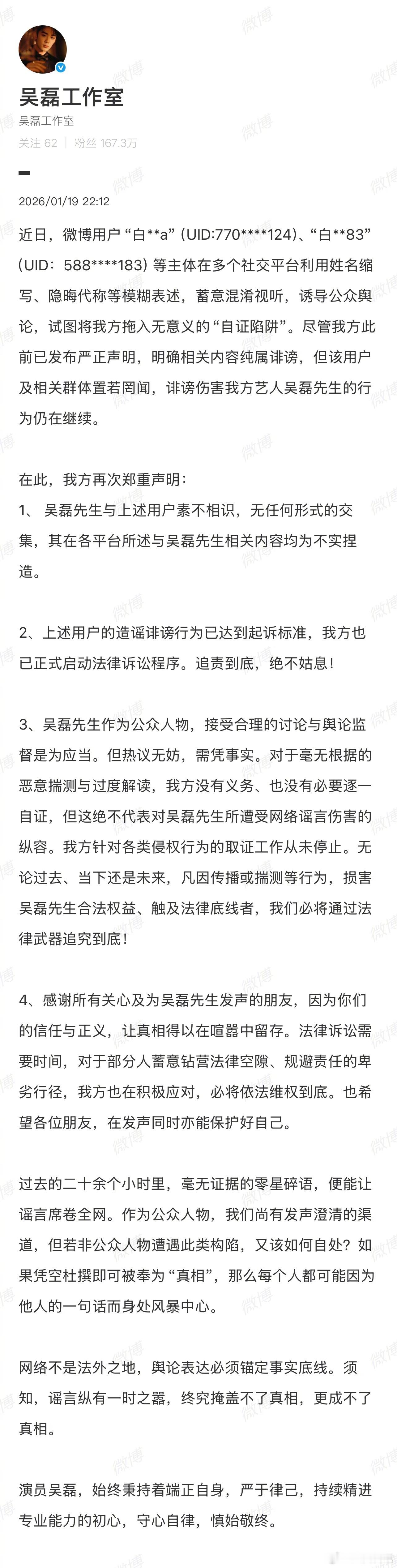 吴磊工作室再发声明 吴磊 白珊珊