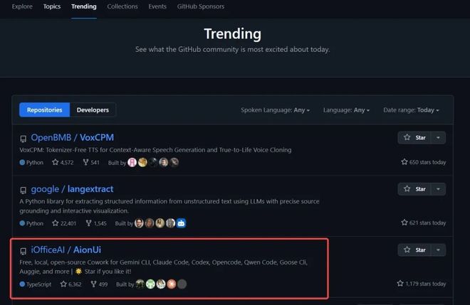 很快啊,开源社区给出了回应,专治各种漫天要价。GitHub上先是冒出了一个Openwork,目标很明确,要做一个开源、可扩展的Cowork风格系统,刚开源就冲上了HackerNews热榜第一。紧接着又来了AionUI,免费、开源、支持多模型,功能差不多,还不要钱。
