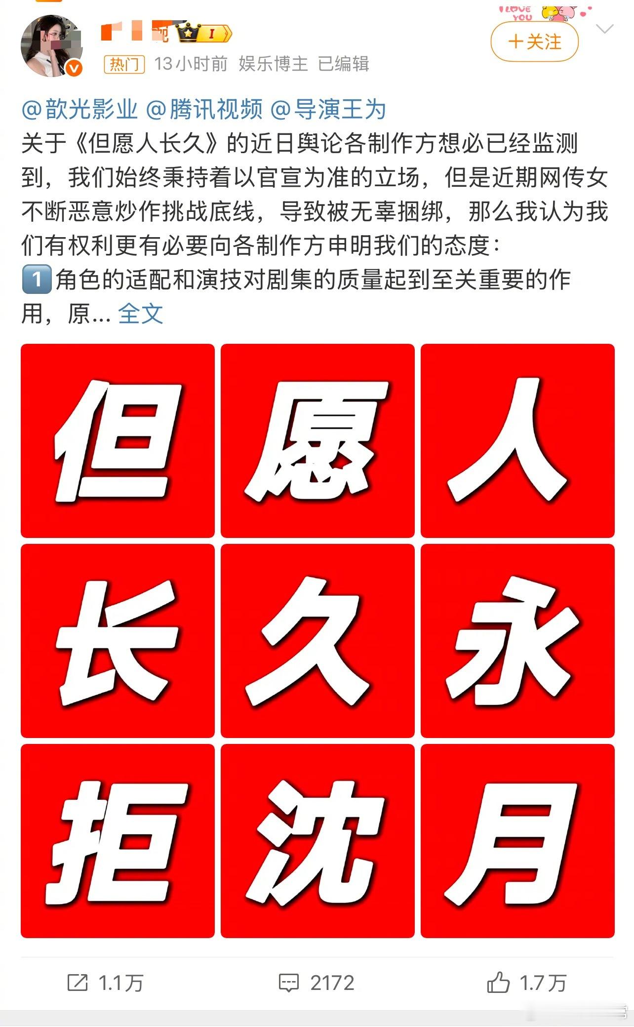 张晚意粉丝《但愿人长久》永拒沈月已经万转了