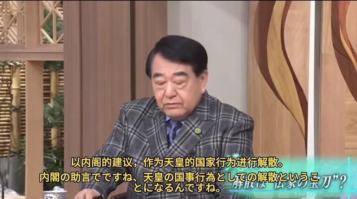 在电视台节目里,对于高市突然宣布解散众议院进行选举,时事评论员寺岛认为,解散国会是宪法7条赋予首相的职权,但这个前提是和内阁商量后以内阁的建议,作为天皇的国家行为解散才是正确的做法。其实首相要反映内阁的意见,但经常有首相根据个人主观意愿恶用,这次高市没有事先和内阁商量就决定有独断专行之嫌。其他嘉宾也觉得解散缺乏正当性。