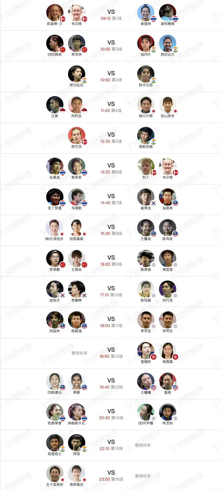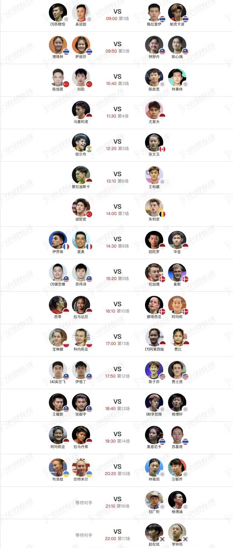 今天是北京时间1月20日,世界羽联印尼羽毛球大师赛鸣金开战,此站赛事为超级500级别,分资格赛和正赛。因不是高级别赛,很多高水平运动员并未参赛,也有众多知名选手退出比赛,包括世界排名第一的混双组合冯彦哲/黄东萍、世界排名第二的男单昆拉武特等。国羽今天一共有8场比赛,其中5场是资格赛。男单胡哲安、混双朱一珺/李茜等今天会出战。以下为三个场地的具体赛程安排,比赛将于上午9点开始。