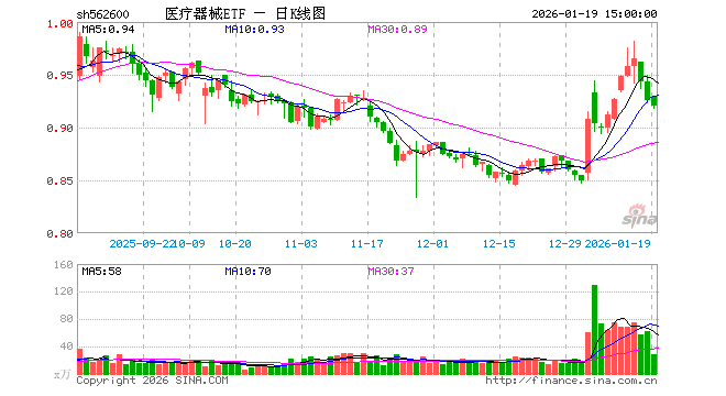 1月19日,医疗器械ETF(562600)跌0.54%,成交额2593.24万元。当日份额增加1000.00万份,最新份额为6.70亿份,近20个交易日份额增加2.79亿份。最新资产净值计算值为6.17亿元。