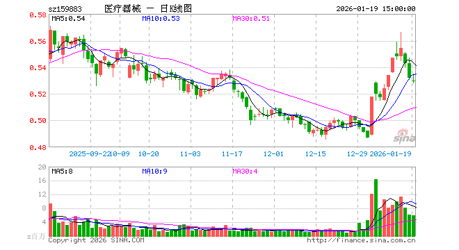 1月19日,医疗器械ETF(159883)跌0.38%,成交额3.21亿元。当日份额减少1.27亿份,最新份额为115.98亿份,近20个交易日份额增加35.41亿份。最新资产净值计算值为61.46亿元。