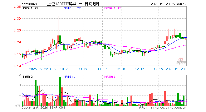 1月20日,上证180ETF鹏华(510040)开盘涨0.25%,报1.217元。上证180ETF鹏华(510040)重仓股方面,贵州茅台开盘涨0.25%,紫金矿业涨0.00%,恒瑞医药涨0.02%,寒武纪跌0.19%,药明康德跌0.50%,中国平安涨0.08%,中芯国际跌0.23%,工业富联跌0.99%,招商银行涨0.05%,海光信息涨1.97%。