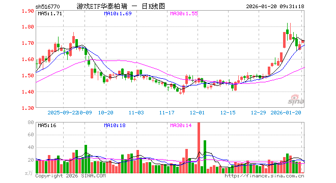 1月20日,游戏ETF华泰柏瑞(516770)开盘涨0.53%,报1.699元。游戏ETF华泰柏瑞(516770)重仓股方面,巨人网络开盘涨3.72%,恺英网络涨0.68%,三七互娱涨1.18%,光线传媒涨0.47%,神州泰岳涨0.64%,完美世界涨0.87%,吉比特涨0.23%,掌趣科技涨1.51%,顺网科技涨0.99%,浙数文化涨4.61%。