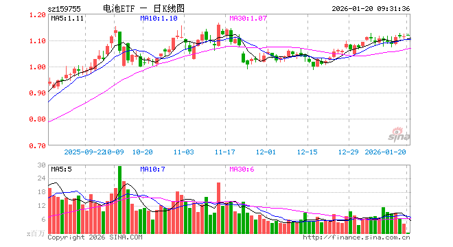 电池ETF(159755)业绩比较基准为国证新能源车电池指数收益率,管理人为广发基金管理有限公司,基金经理为罗国庆,成立(2021-06-15)以来回报为11.24%,近一个月回报为9.33%。
