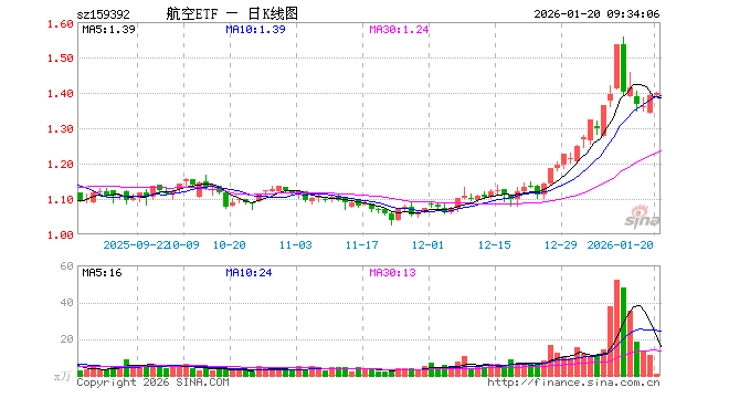 1月20日,航空ETF(159392)开盘涨0.00%,报1.392元。航空ETF(159392)重仓股方面,万丰奥威开盘涨0.06%,洪都航空跌2.32%,航天彩虹跌0.66%,中直股份跌0.55%,珠海冠宇涨0.38%,华力创通涨2.10%,应流股份涨0.00%,南网科技涨3.85%,睿创微纳涨0.77%,中国卫星涨1.05%。