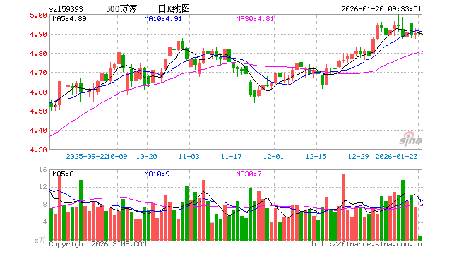 1月20日,沪深300指数ETF(159393)开盘涨0.00%,报4.898元。沪深300指数ETF(159393)重仓股方面,宁德时代开盘涨0.32%,贵州茅台涨0.25%,中国平安涨0.08%,招商银行涨0.05%,紫金矿业涨0.00%,新易盛跌0.41%,中际旭创涨0.00%,美的集团涨0.05%,东方财富跌0.04%,长江电力涨0.00%。