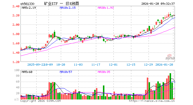 矿业ETF(561330)业绩比较基准为中证有色金属矿业主题指数收益率,管理人为国泰基金管理有限公司,基金经理为麻绎文,成立(2022-10-19)以来回报为118.55%,近一个月回报为21.77%。