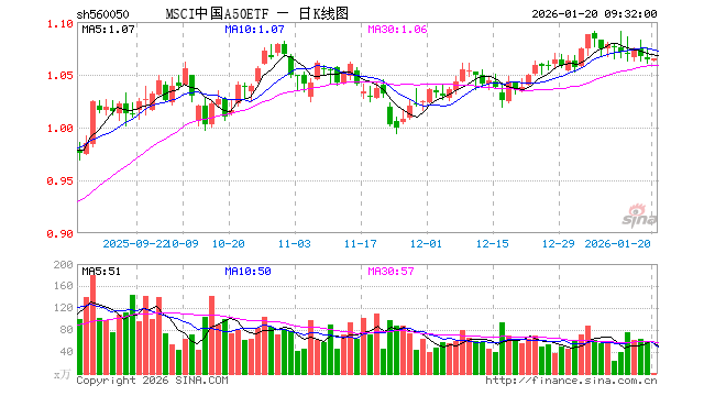 MSCI中国A50ETF(560050)业绩比较基准为MSCI中国A50互联互通人民币指数收益率,管理人为汇添富基金管理股份有限公司,基金经理为乐无穹、吴振翔,成立(2021-10-29)以来回报为6.40%,近一个月回报为2.54%。
