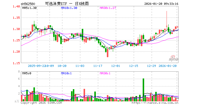 1月20日,可选消费ETF(562580)开盘跌0.31%,报1.305元。可选消费ETF(562580)重仓股方面,美的集团开盘涨0.05%,比亚迪涨0.03%,格力电器涨0.02%,赛力斯跌0.11%,福耀玻璃涨0.07%,三花智控涨0.41%,海尔智家涨0.00%,上汽集团涨0.20%,拓普集团涨1.57%,中国中免涨1.61%。