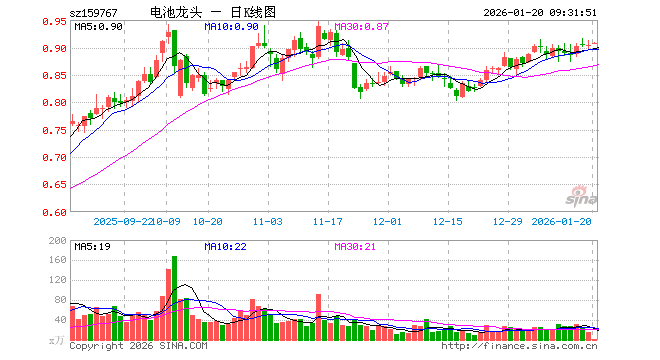 1月20日,电池龙头ETF(159767)开盘涨0.33%,报0.907元。电池龙头ETF(159767)重仓股方面,宁德时代开盘涨0.32%,比亚迪涨0.03%,亿纬锂能涨0.37%,三花智控涨0.41%,华友钴业涨1.00%,先导智能涨0.68%,赣锋锂业涨1.59%,国轩高科跌0.07%,欣旺达涨0.16%,天赐材料涨0.96%。