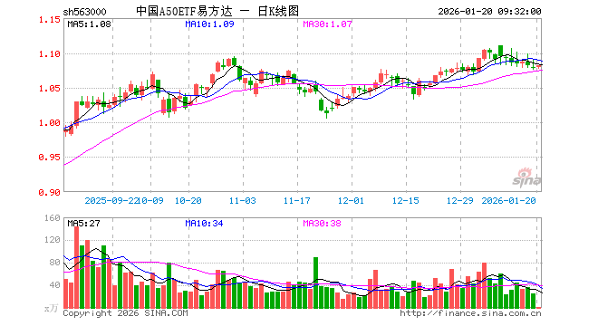 1月20日,中国A50ETF易方达(563000)开盘涨0.00%,报1.079元。中国A50ETF易方达(563000)重仓股方面,宁德时代开盘涨0.32%,紫金矿业涨0.00%,工业富联跌0.99%,贵州茅台涨0.25%,海光信息涨1.97%,寒武纪跌0.19%,比亚迪涨0.03%,恒瑞医药涨0.02%,立讯精密涨0.07%,中际旭创涨0.00%。