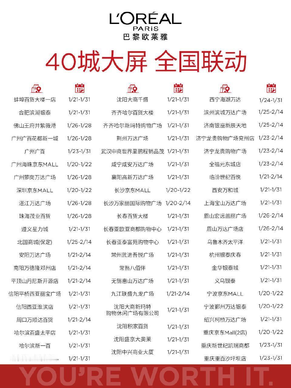 巴黎欧莱雅给田栩宁准备了40城应援🔥