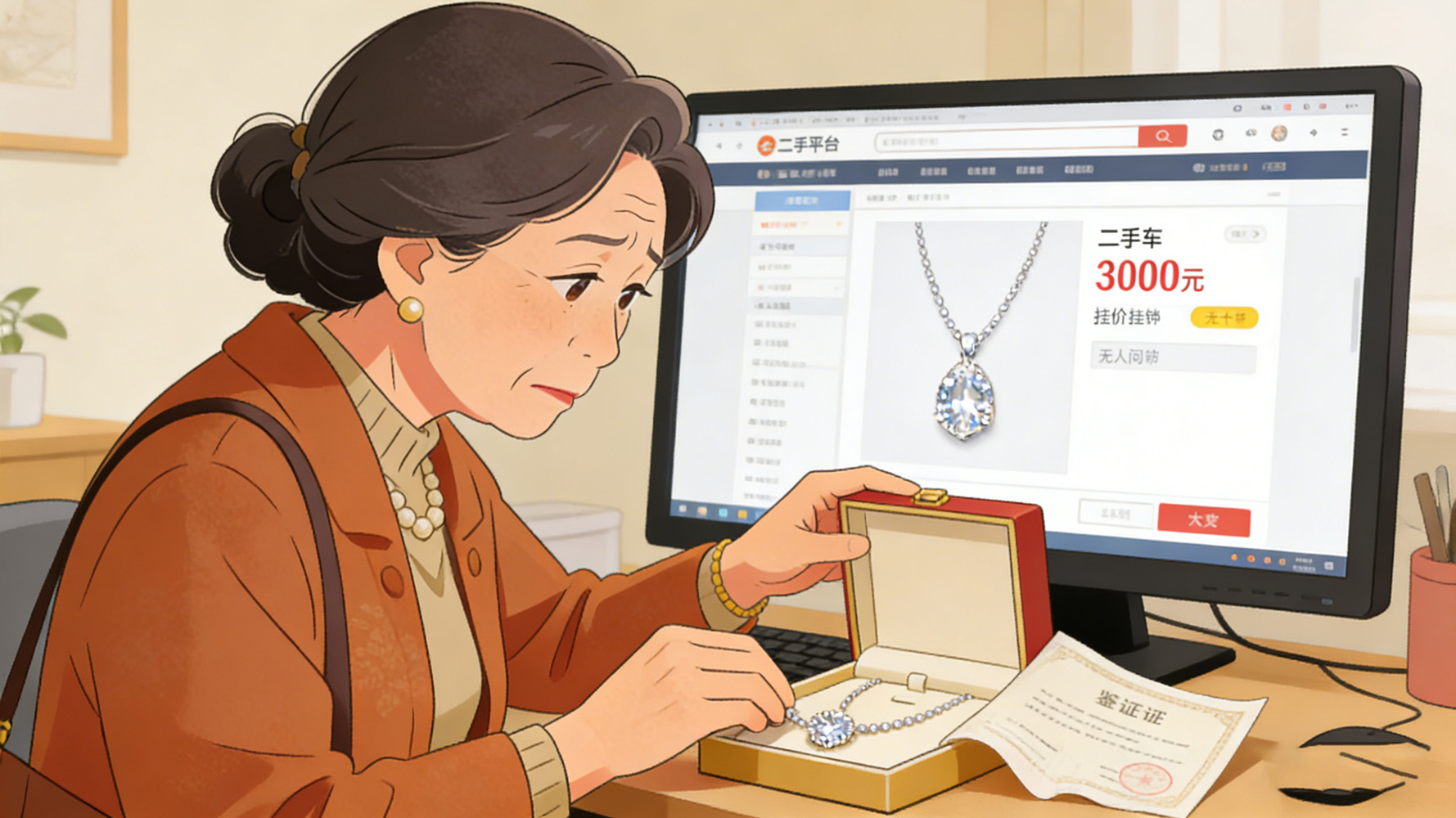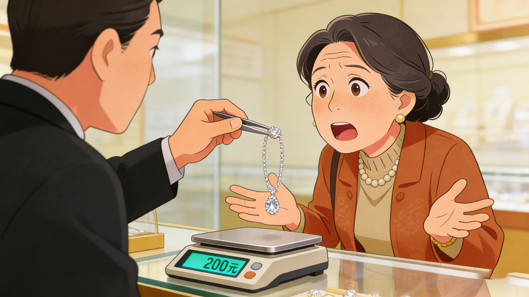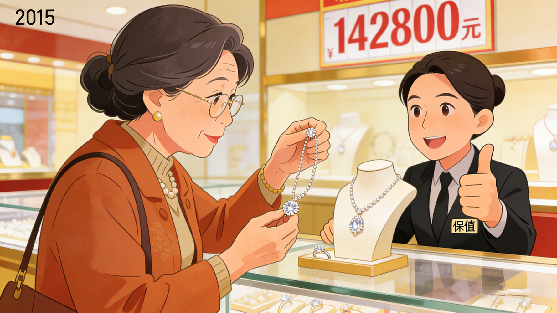 广东一位大姐,2015年为结婚花142800元买了条钻石项链,听信销售保值话术,将其当作应急后手。如今手头紧想变现,跑遍回收店最高仅得200元,专柜也仅支持以旧换新抵5000元,满心后悔。