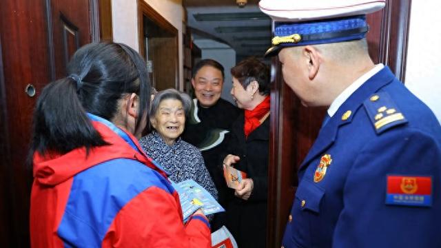 1月19日下午,在普陀区象源丽都小区,公安、民政、街道、居委、电力、燃气等工作人员分组对小区重点关爱人群家庭开展上门入户宣传服务,递送安全宣传资料,开展安全用火用电用气提示,置换不符合安全标准和老化的插线板等。工作人员提醒重点关爱人群,要安全使用电热毯,使用电热取暖器时要远离可燃物,不在电热取暖器上烘烤衣物,电动自行车不得入室停放充电,切记厨房用火不离人,不要卧床吸烟。对年纪特别大的老人,还主动开展关爱帮扶,帮忙查看电气线路和燃气灶具是否符合安全要求,帮助清理楼道、阳台和厨房的可燃杂物。