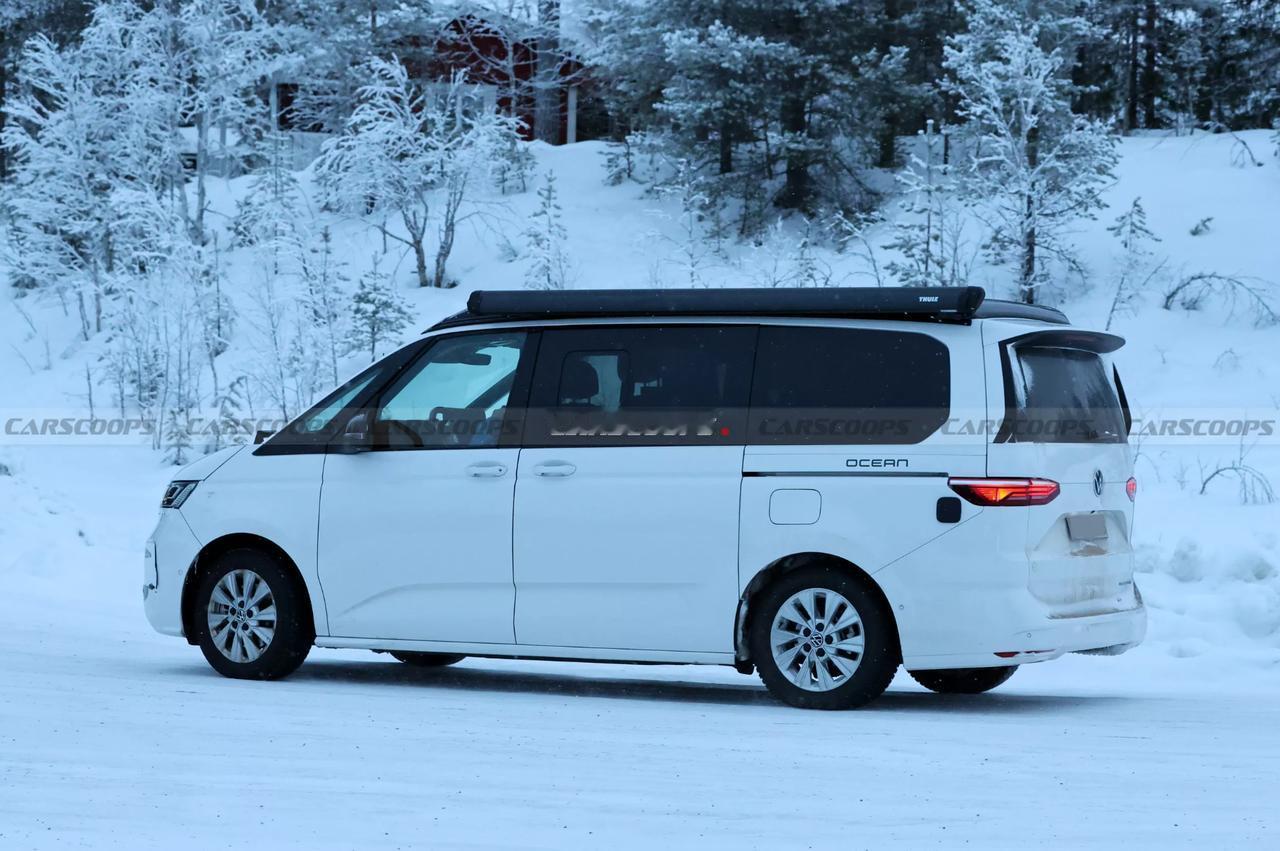 大众T7 Multivan即将改款,内饰升级成亮点。 近期,改款T7露营车在冬季测试中被捕捉到,外观虽贴有现款车贴膜,但细节透露出变化:前脸的纤细进气口可能被取消,大灯轮廓暗示更大尺寸。新保险杠预计采用矩形设计,与ID. Buzz呼应,而尾灯和后保险杠可能微调。 内饰将迎来显著升级,最引人注意的是更大尺寸的独立式信息娱乐系统显示屏,预计采用12.9英寸MIB4系统,取代现款10英寸屏。此外,仪表盘和开关装置也将重新设计,方向盘更新。 动力系统方面,现款提供2.0升TDI发动机,功率148马力至201马力;插电式混合动力版本,搭载1.5升发动机、电动机和19.7千瓦时电池组,综合功率241马力,纯电续航52英里。【来自懂车帝车友圈】